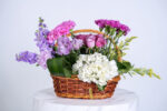 Be the first to review “Mathiola purple and rose and carnetion purple hidrengia and soled aster basket arrangement” Cancel reply