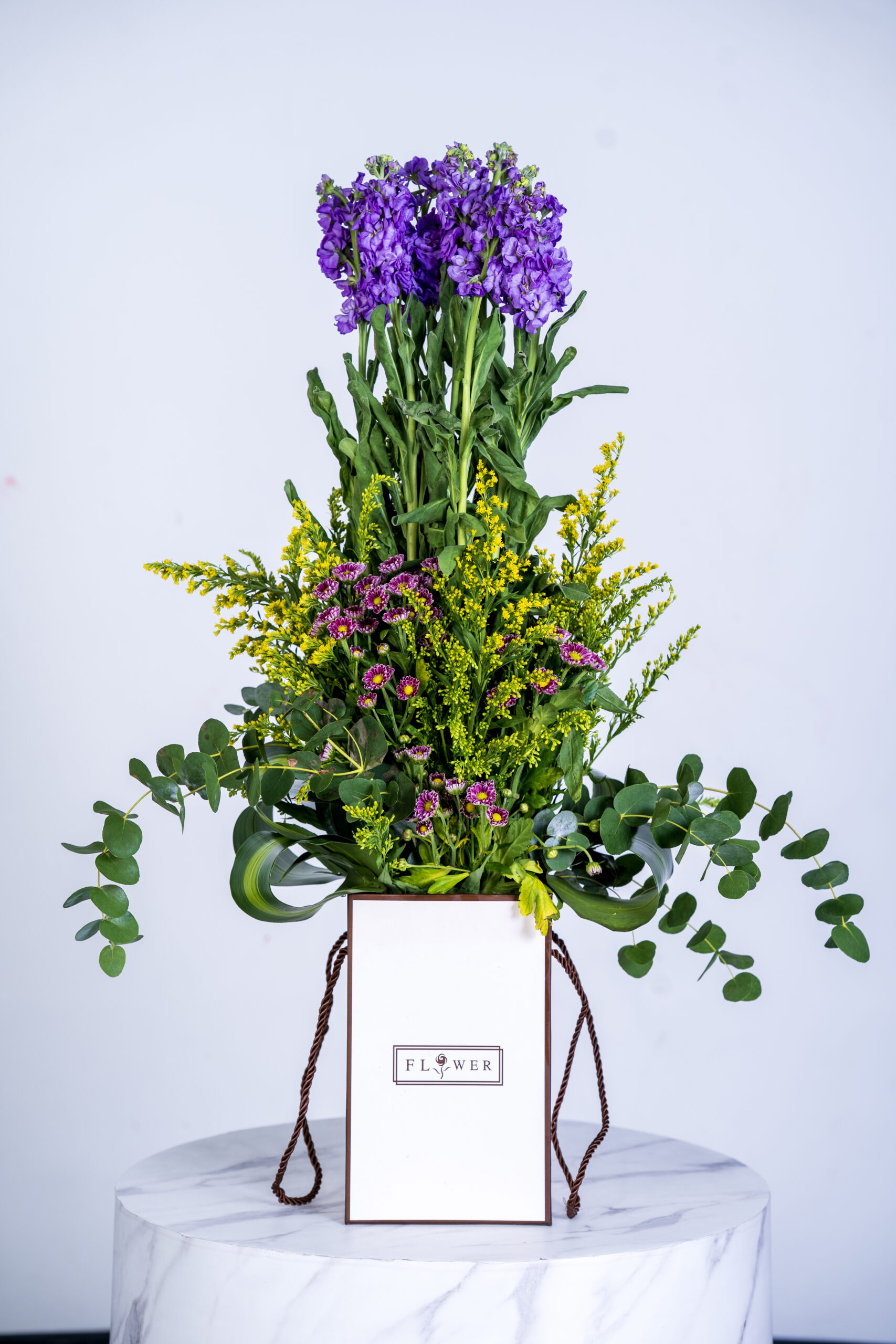 Mathiola Purple Soledaster Box Arrangement